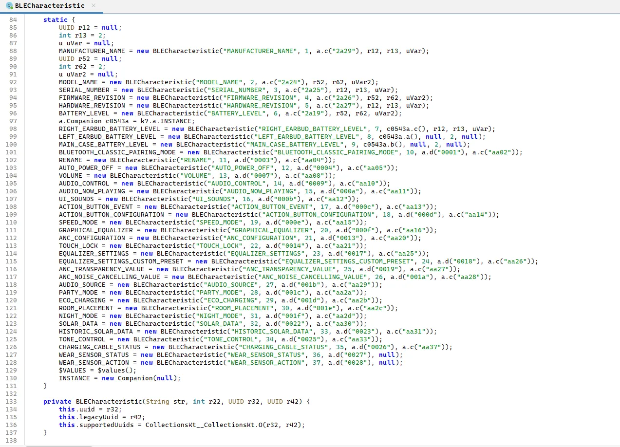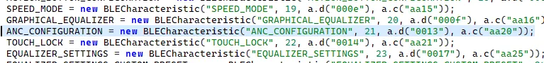 0000aa20 UUID’sinin geçtiği yerde ANC_CONFIGURATION ve BLE anahtar kelimelerinin görülmesi, bu karakteristiğin uygulama tarafında ANC konfigürasyonu ile ilişkilendirildiğini doğrulamaktadır. Bu bulgu, cihaz gözlemleri ile APK kod yolu arasında doğrudan bir bağ kurmamızı sağlar.